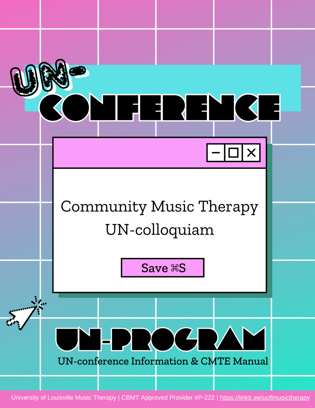 . The live UN-conference will take place on the UofL Zoom platform and will be edited and posted for viewing in the week following the live event. In addition, attendees will read and reflect on highlighted CoMT papers, articles, and other multi-media to inspire new ways of thinking and being in music therapy.